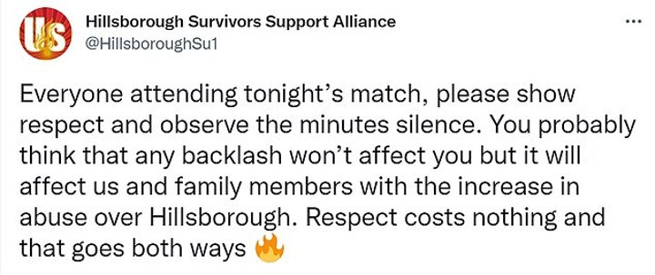 Earlier today, the Hillsborough Survivors Support Alliance warned Reds supporters that they may have faced increasing abuse over Hillsborough should they have decided to boo the anthem or the minute's silence in memory of Her Majesty.