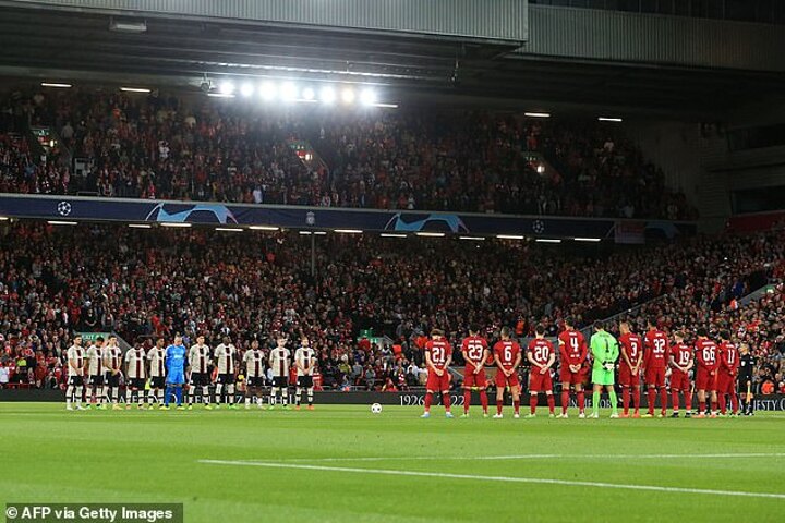 The players wore black armbands for the match with the traditional pre-match Champions League anthem not played. It came after Liverpool boss Jurgen Klopp said observing the moment's silence was a suitable way to show respect for the Queen.