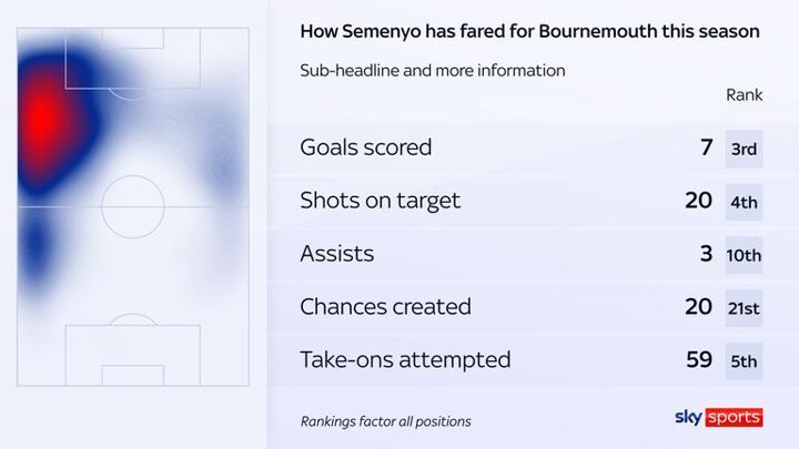 Semenyo has since scored 29 goals in over 100 appearances for the Cherries and is perfectly capable of operating on either flank, with his minutes having been shared almost equally between the left and the right wing this season.
