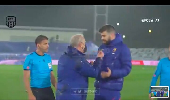 Pique, who missed the crucial LaLiga derby clash through injury, came down to the pitch to confront referee Jesus Gil Manzano on how Barcelona were only given four minutes to find an equaliser in second-half stoppage time.