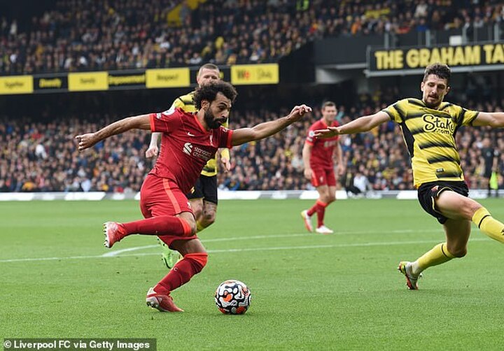 Salah collected a pass from Roberto Firmino on the edge of the box and beat Juan Hernandez, Juraj Kucka and Craig Cathcart to find the back of the net.