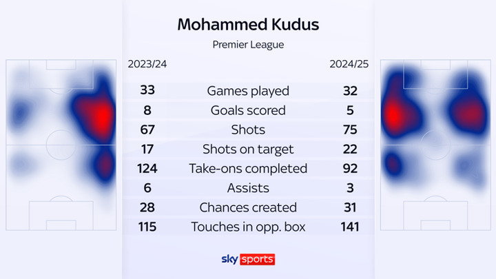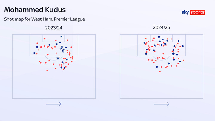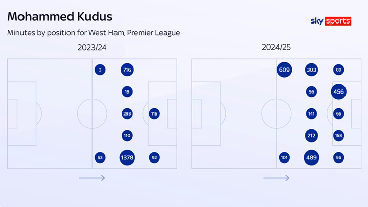 There are, though, the caveats around West Ham's form and also the positions Kudus was asked to play during the 2024/25 season.