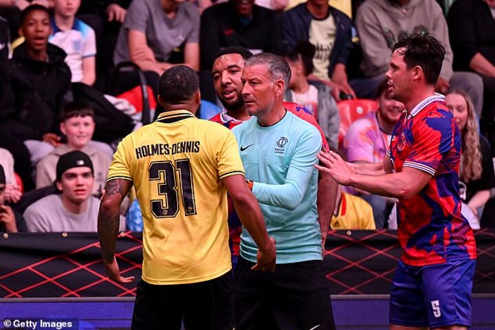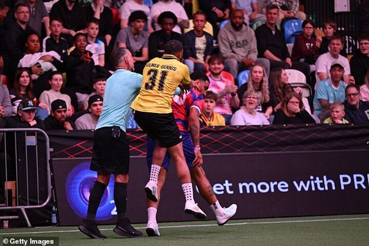 Wembley Rangers suffered a 4-3 defeat, with Deeney angering opponent Tareiq Holmes-Dennis by barging him over.