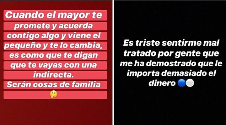 'It's like they say you're going with something indirectly. It's a family thing. It's sad to feel poorly treated by people who have shown me that they care about money too much.'