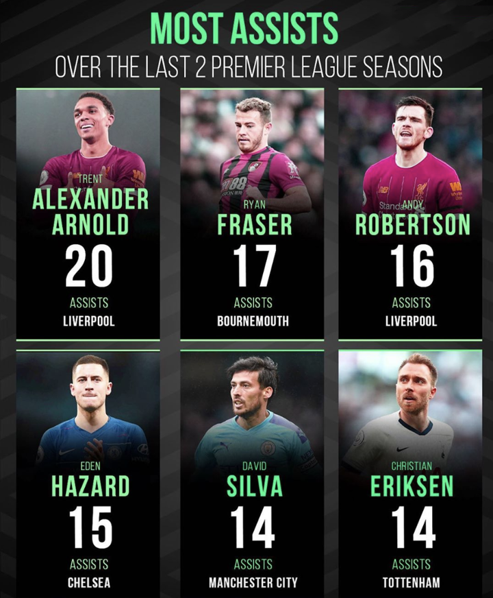 Another stellar performance sees Alexander-Arnold register 20 Premier League assists since last season. How about others?