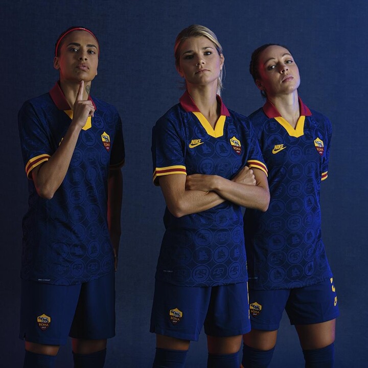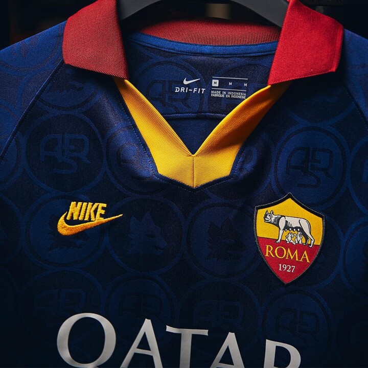 Like the jersey they wore, the 2019-20 version is a deep, dark blue with a vivid Giallorossi trim, which covers both the collar and the cuffing of both sleeves.