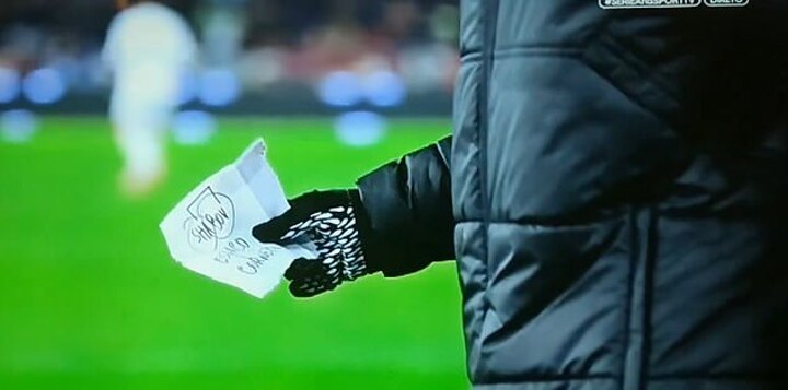 The cameras then caught Mourinho - known for his gamesmanship tactics down the years - writing a note on a piece of paper.