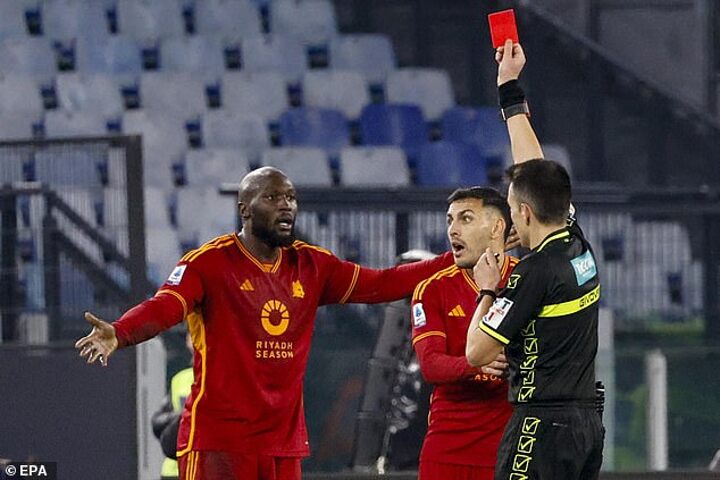 Things got even worse when Lukaku was sent off for a bad challenge with nine-man Roma left desperately clinging on for a point.