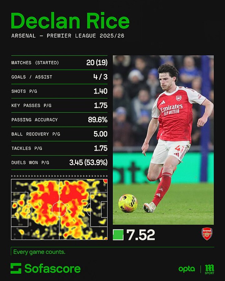 For a defensive midfielder, Rice has it all, despite pundits in some quarters desiring he scores more goals. The only thing the Gunners' fan favourite is missing is a stacked trophy cabinet. Right now, all he's won is the Conference League with West Ham.