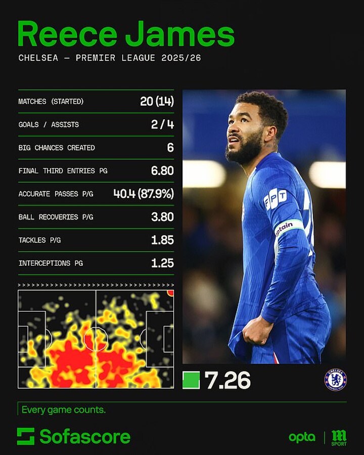 While significantly improving his availability, James has also taken a leap in terms of his performances, stepping up with eight important goal contributions ahead of Wednesday's London derby.