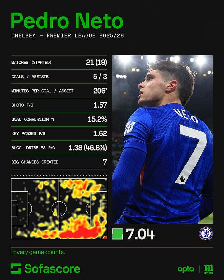Time will tell if Rosenior relies upon Pedro Neto as much as his predecessor Enzo Maresca has this season, but he would be wise to do so, with the Portugal international one of the Blues' lynchpins this season.