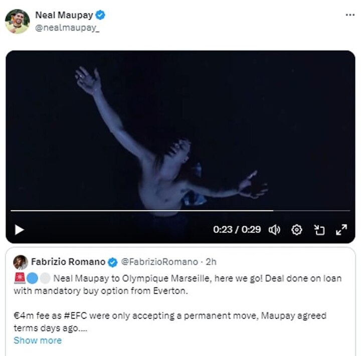 'Neal Maupay has left Everton to join Olympique de Marseille on loan for 2024/25, with the French club having an obligation to buy the forward at the end of the season.