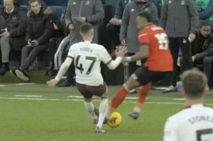 Brown appeared to follow through onto Foden's ankle, but referee Tim Robinson failed to penalise the forward for the tackle.