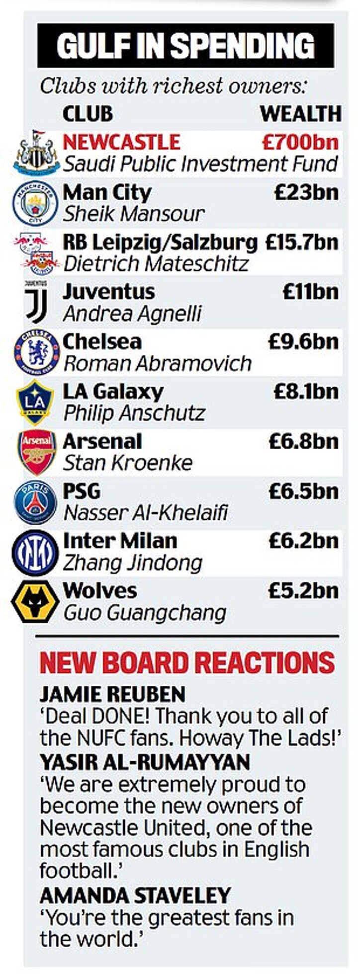 And what about the idea of this deal being a means of sports-washing for the Saudis? 'If we were doing some sports-washing deal, we'd be buying a different club at the top the league,' she said.