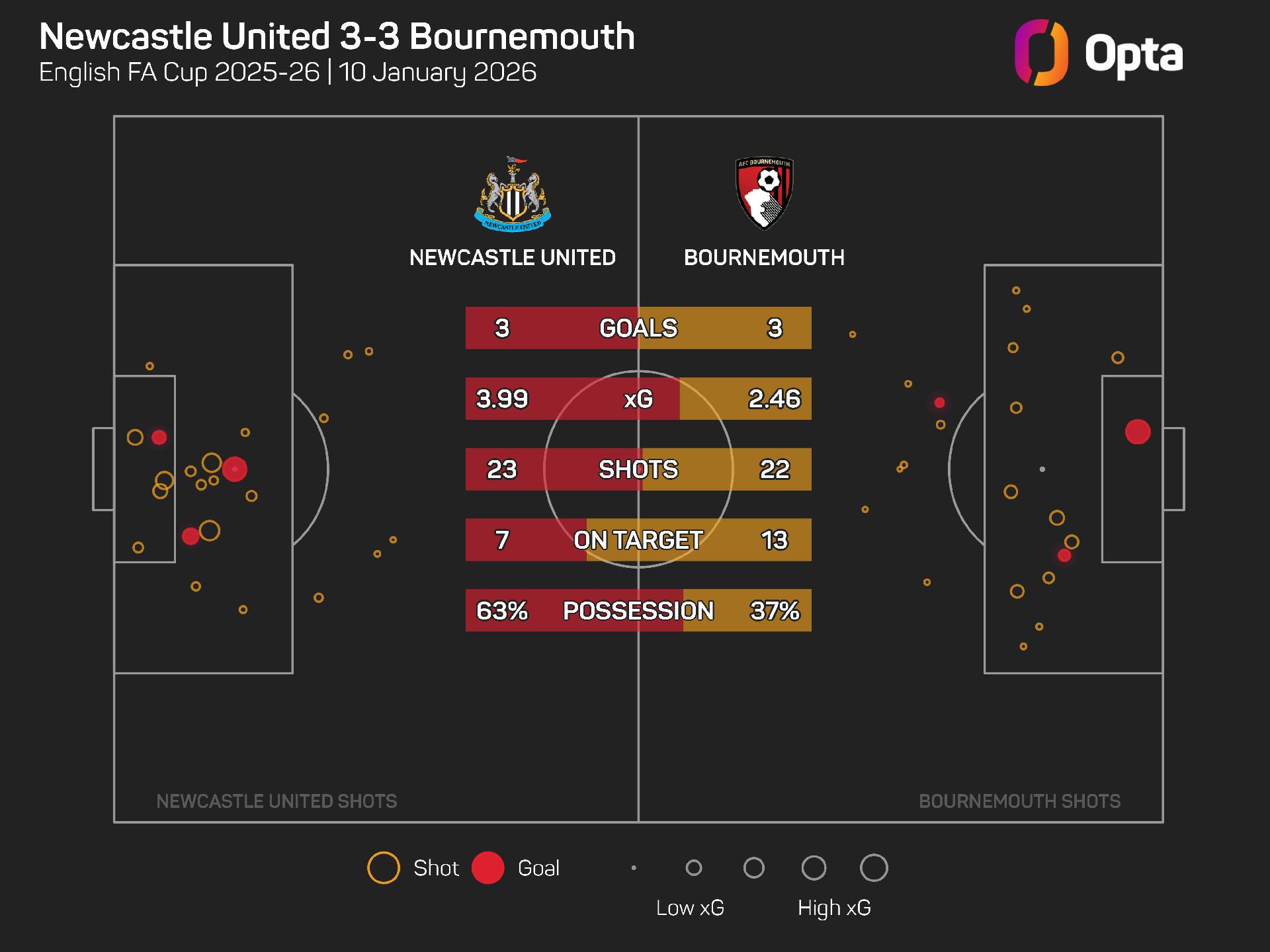 But after holding their nerve from 12 yards, Newcastle have reached at least the fourth round of the FA Cup in three consecutive seasons for the first time since 2019-20 (four in a row).