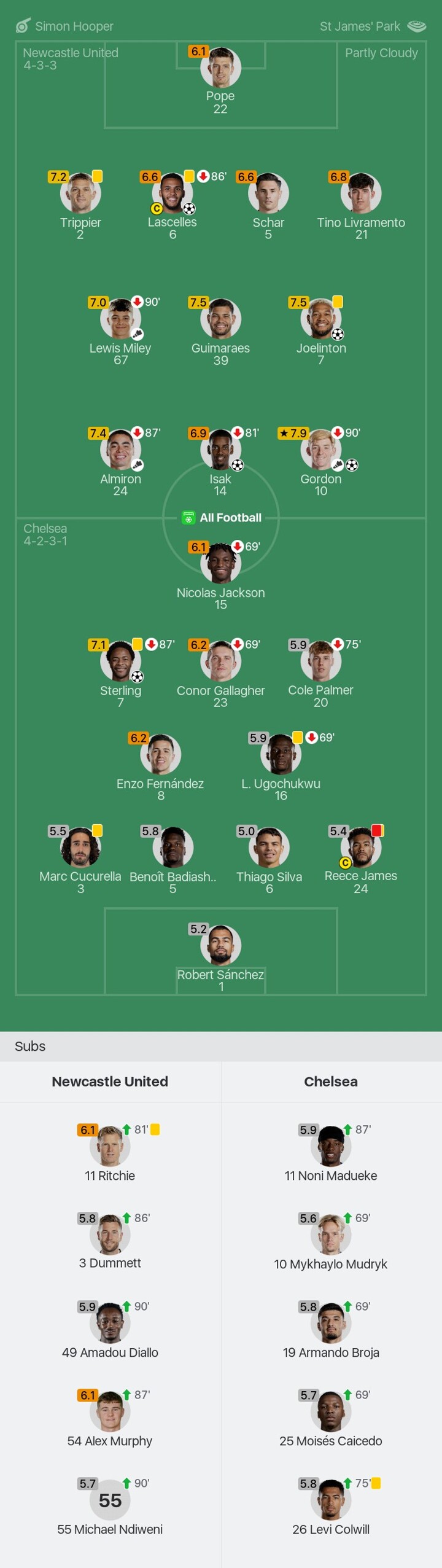We bring you the player ratings for Newcastle United vs Chelsea as Gordon becomes Man of the Match with a rating of 7.9.