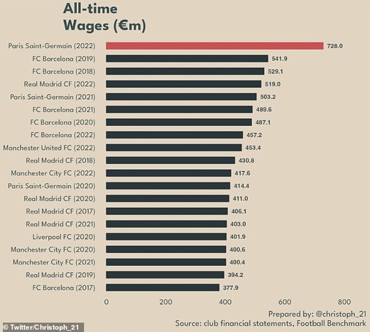 During that time, the three stars were reportedly on a cumulative £3.25m-a-week, while several other players like Sergio Ramos, Marco Verratti and Gianluigi Donnarumma were also on astronomical wages.