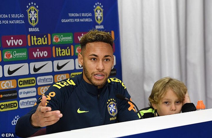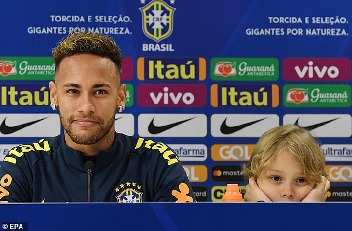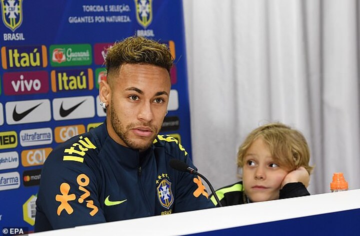 Neymar was joined by his son and 'best mate' Davi Lucca da Silva Santos during his press conference ahead of Brazil's clash against Uruguay.