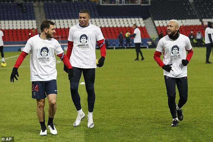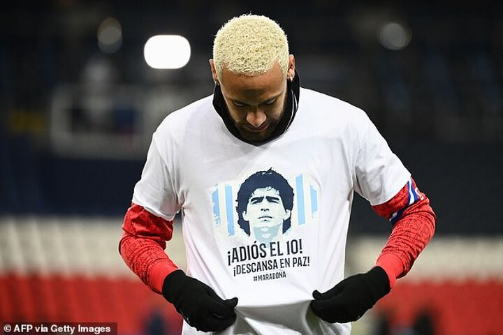 Neymar has already been among those paying public tribute to Maradona's passing after warming up in a shirt against Bordeaux showing his face with text reading 'Bye number 10! Rest in peace' during the French top flight encounter last Saturday.