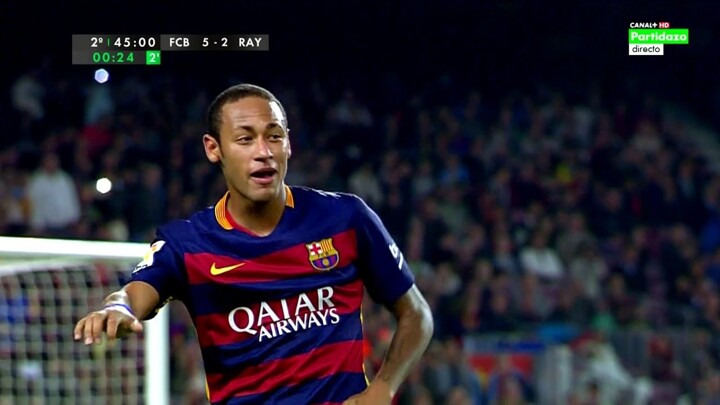 The 2015/16 season was the best season for Neymar in which he scored 20 goals and delivered 19 assists. In October, Barcelona welcomed Rayo Vallecano at Camp Nou for a league game which the Catalans comfortably won 5-2, courtesy Neymar's four goals.