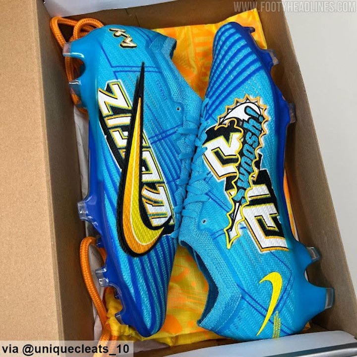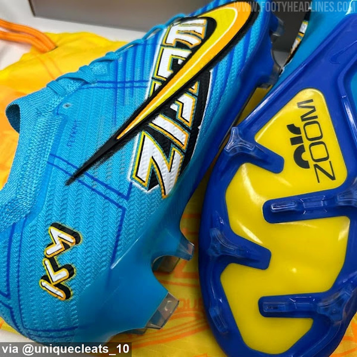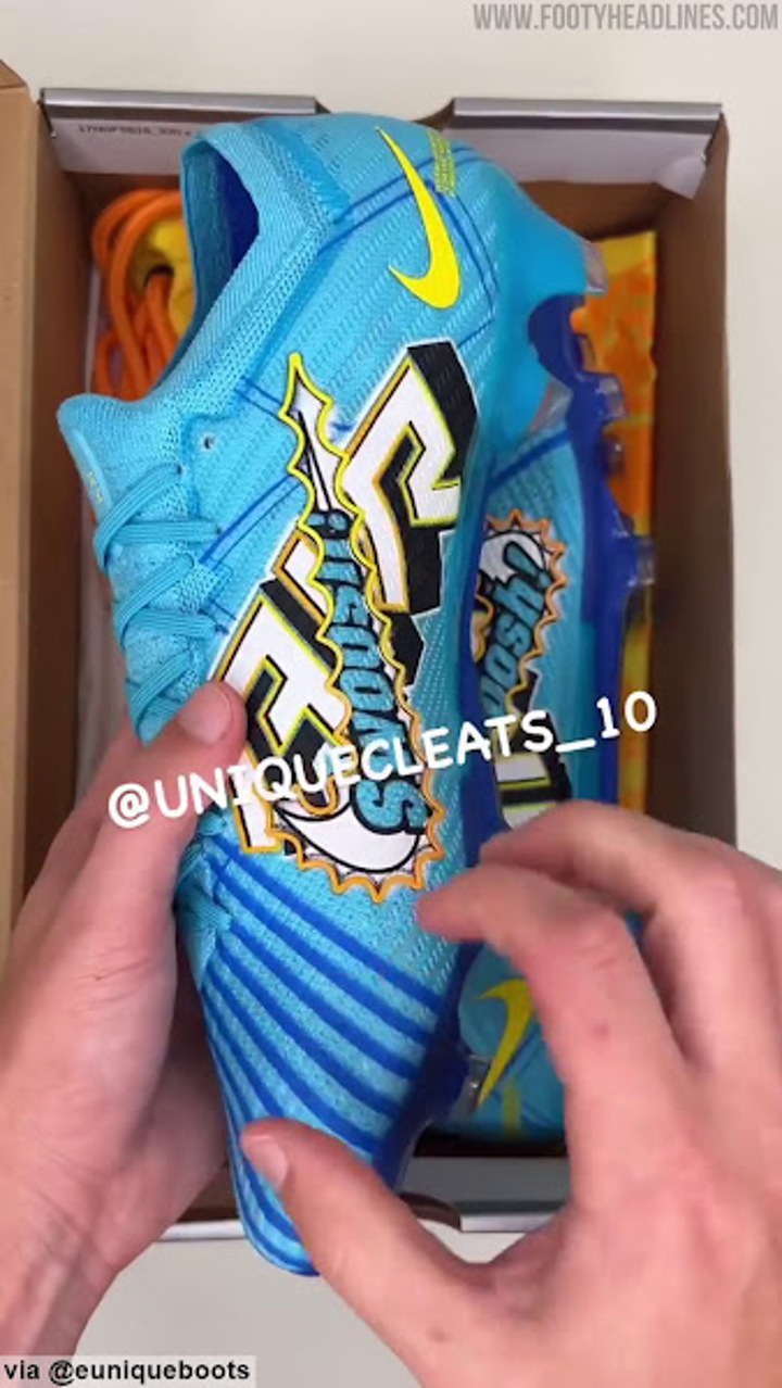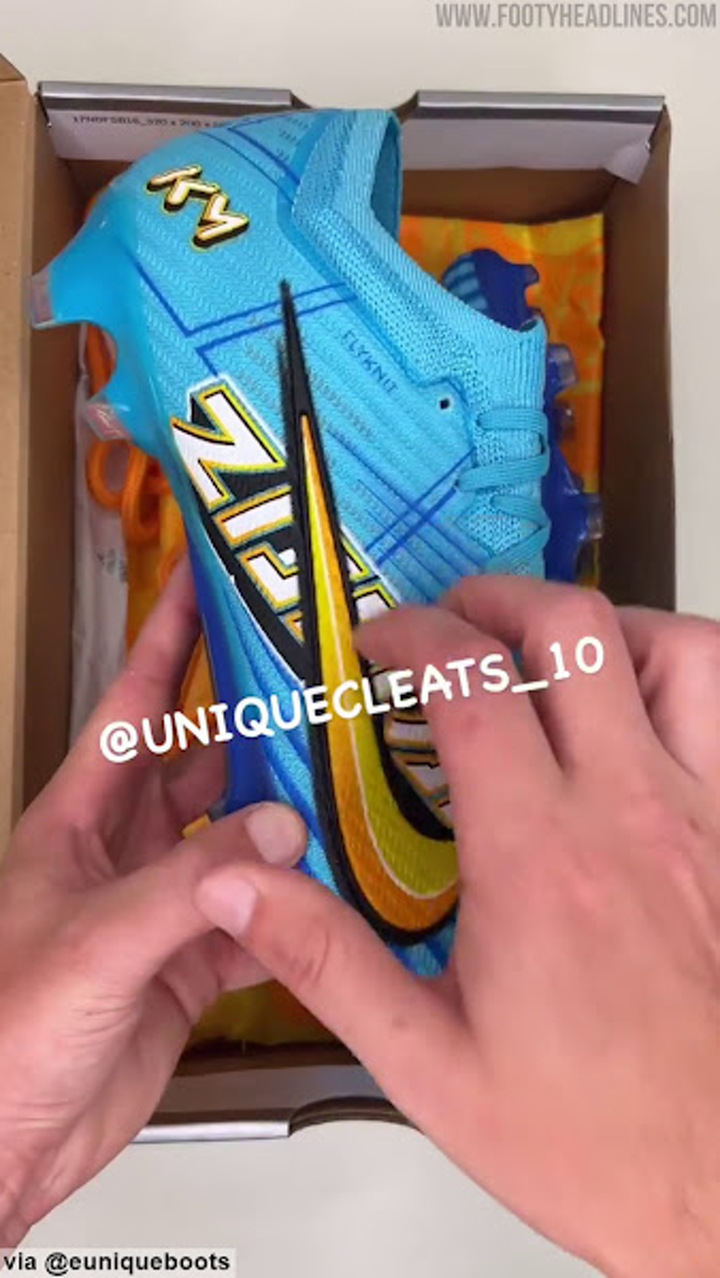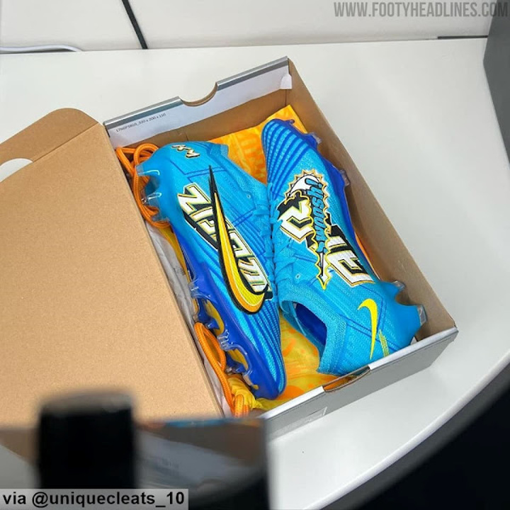 Update: A short unboxing video of the upcoming Nike Mbappe signature pair of football boots has been shared by @euniqueboots_10. They have a comic-inspired design in blue and yellow.