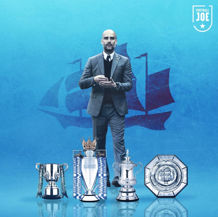 After Pep said Man City have no history, he made history. He becomes the first manager to win four domestic trophies in a calendar year for an English club.