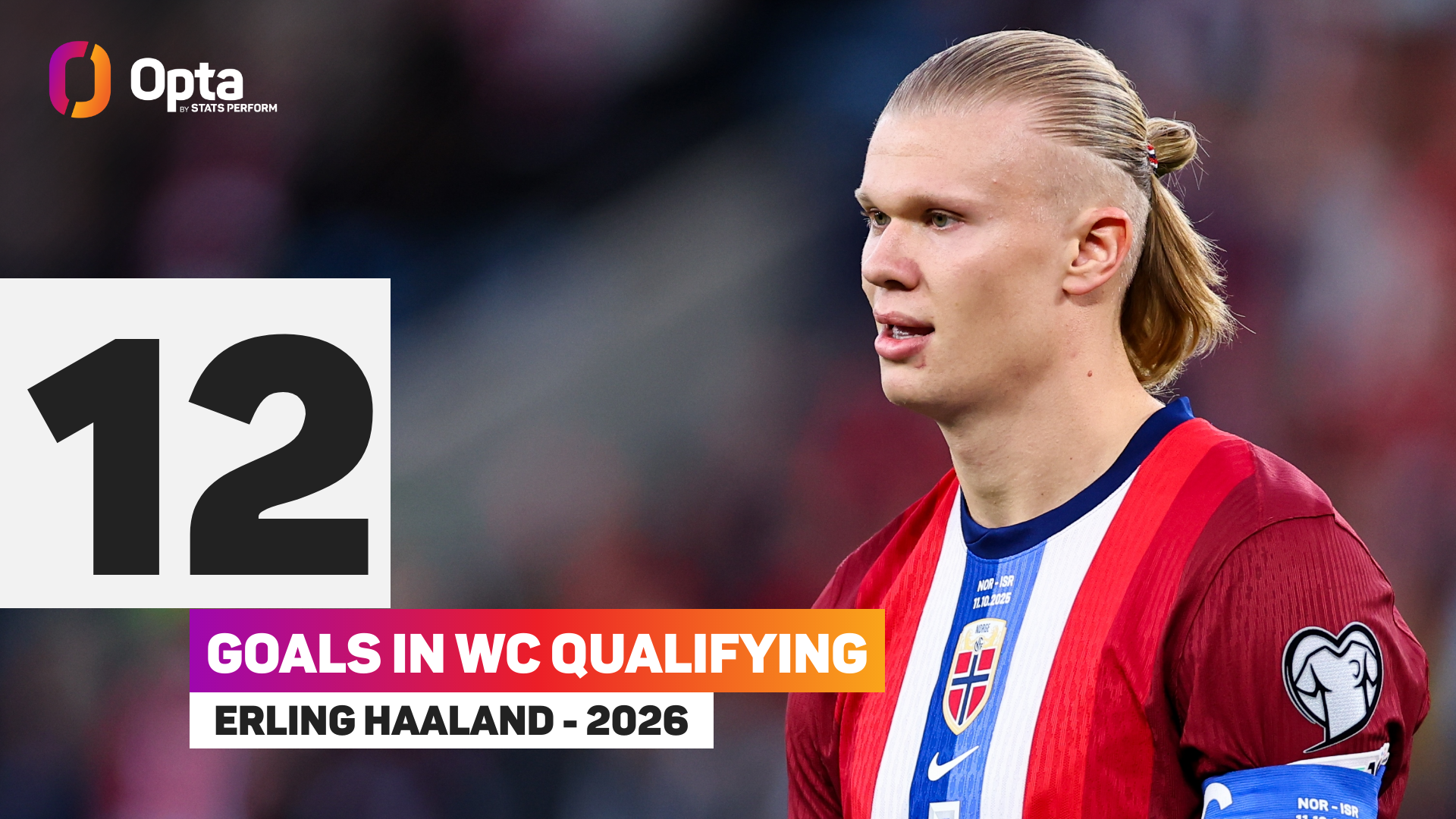Haaland scored a hat-trick on Saturday to move to 12 goals in the 2026 World Cup qualifiers, a tally that has only previously been bettered by Robert Lewandowski (16, 2018) and Cristiano Ronaldo (15, 2018) in a single cycle.