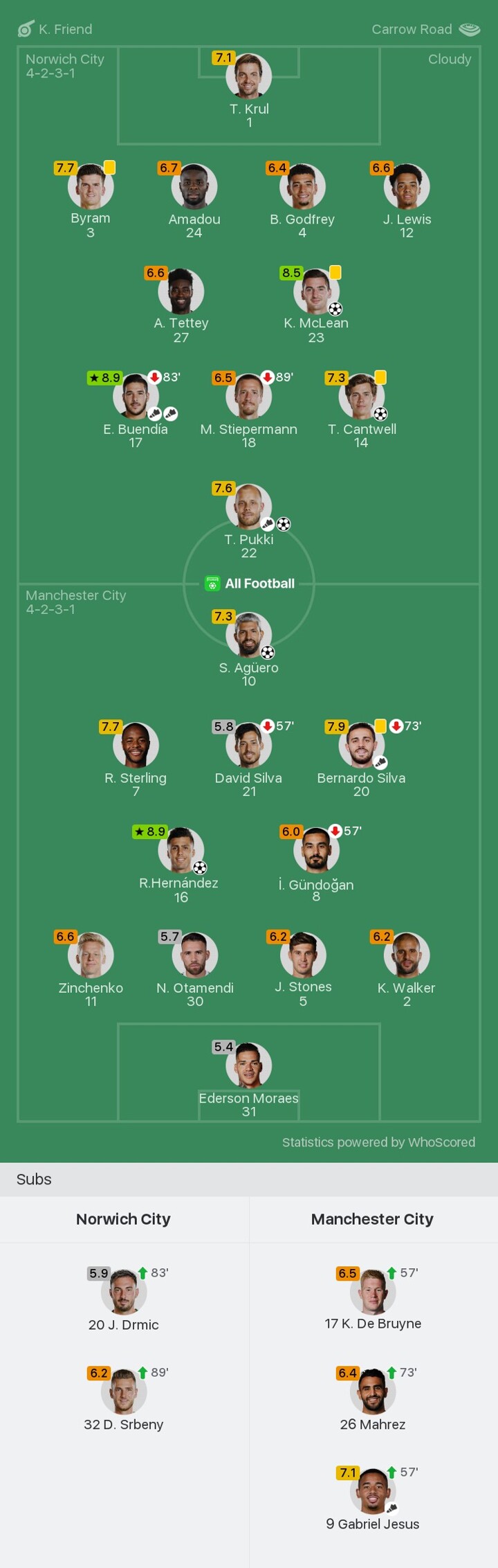 50' GOAL! Norwich City 3-1 Man City (Pukki)