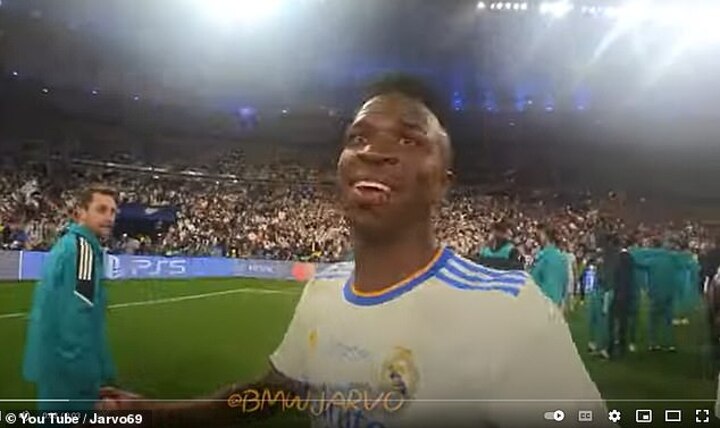 Jarvis hugged Vinicius Jr, spoke to Gareth Bale, and shook hands with Casemiro, Eder Militao, and Eden Hazard after posing as a member of the television crew.