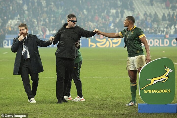 'Jarvo 69' was pictured celebrating with the Springboks after their 12-11 victory over New Zealand.