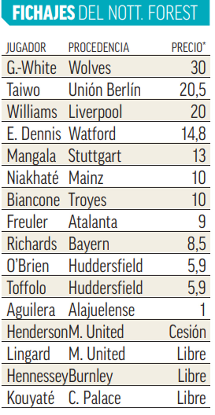Real Valladolid (4.3m), Almeria (19.1m) and Girona (four million) have a spent together a sixth of Forest's budget so far.