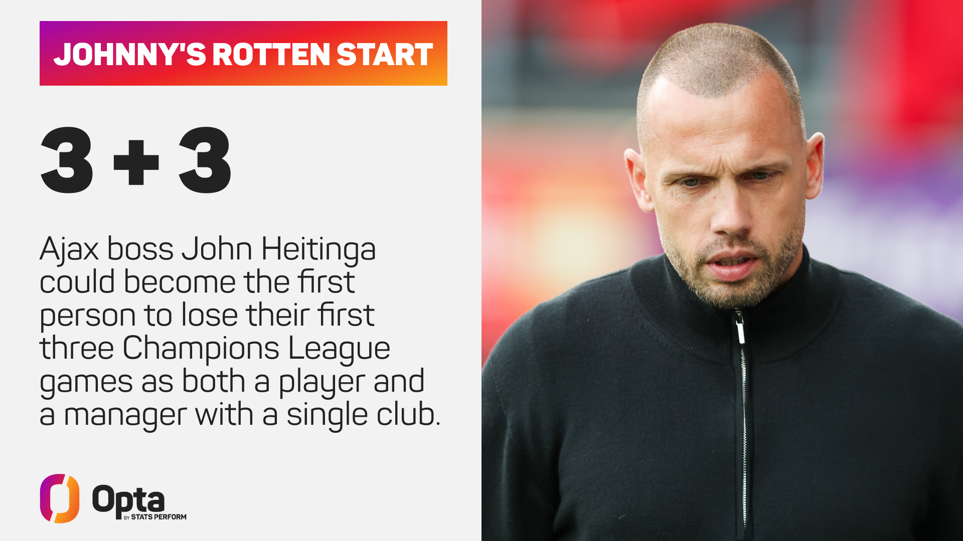 Ajax, meanwhile, are 35th in the 36-team table after back-to-back defeats, with only Kazakh minnows Kairat sitting below John Heitinga's team.