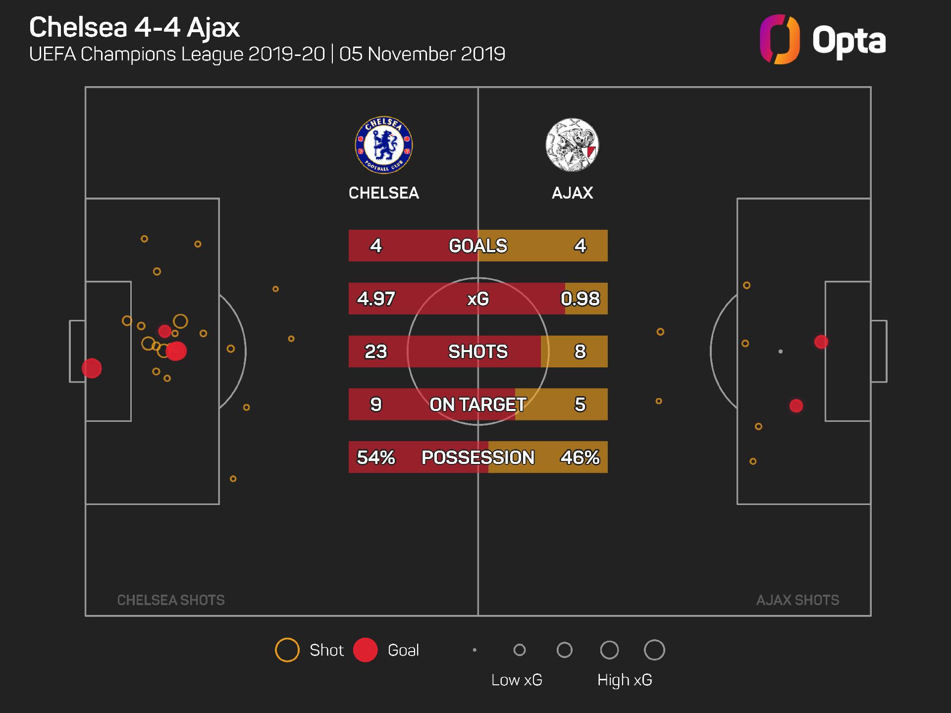 Chelsea – then managed by Frank Lampard – won 1-0 in Amsterdam, before recovering from 4-1 down to earn a 4-4 draw in the reverse fixture in West London, with Ajax seeing Daley Blind and Joel Veltman sent off.