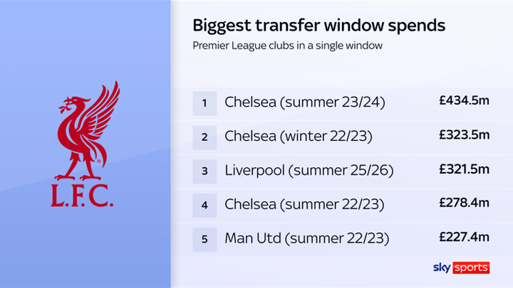 That is currently the third-biggest transfer outlay from a Premier League club in a single window.