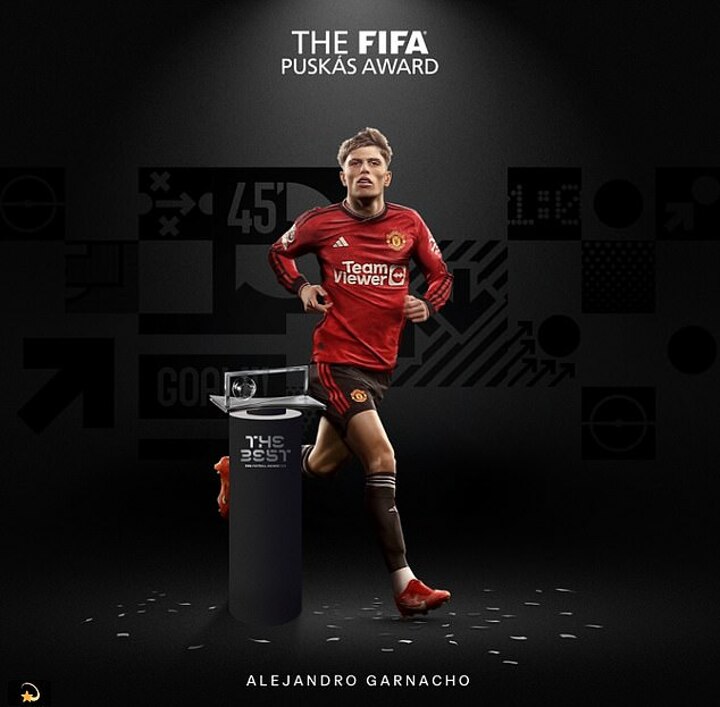 Manchester United's Alejandro Garnacho officially scored the finest goal in the last year after he was crowned the winner of FIFA's prestigious Puskas Award.