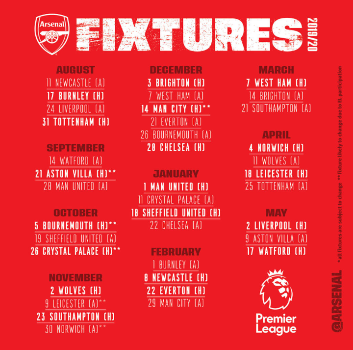 Gunners then have first north London derby of the season as Tottenham arrive in N5, with the reverse fixture taking place on April 25.