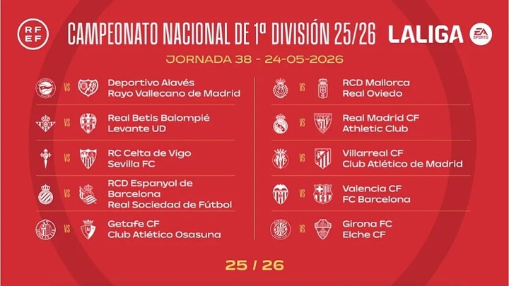 The final matchday of LALIGA EA SPORTS is arranged as follows: