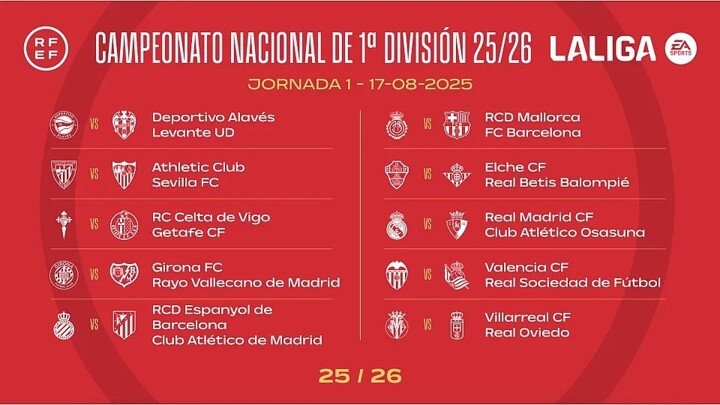 The opening matchday of LALIGA EA SPORTS is as follows: