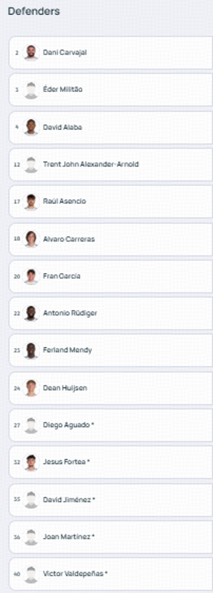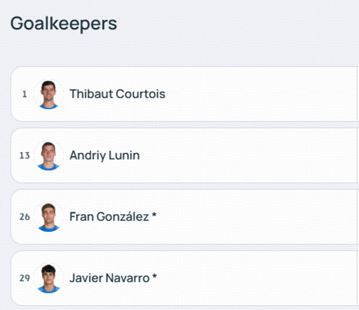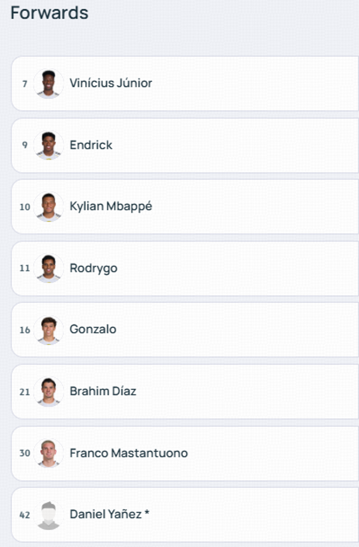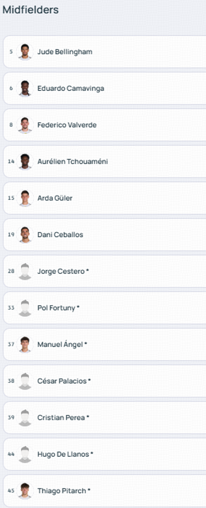 Real Madrid's player list for Champions League 2025/26.