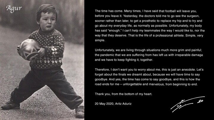 "The time has come," Aduriz's message began. "Many times, I have said that football will leave you before you leave it.