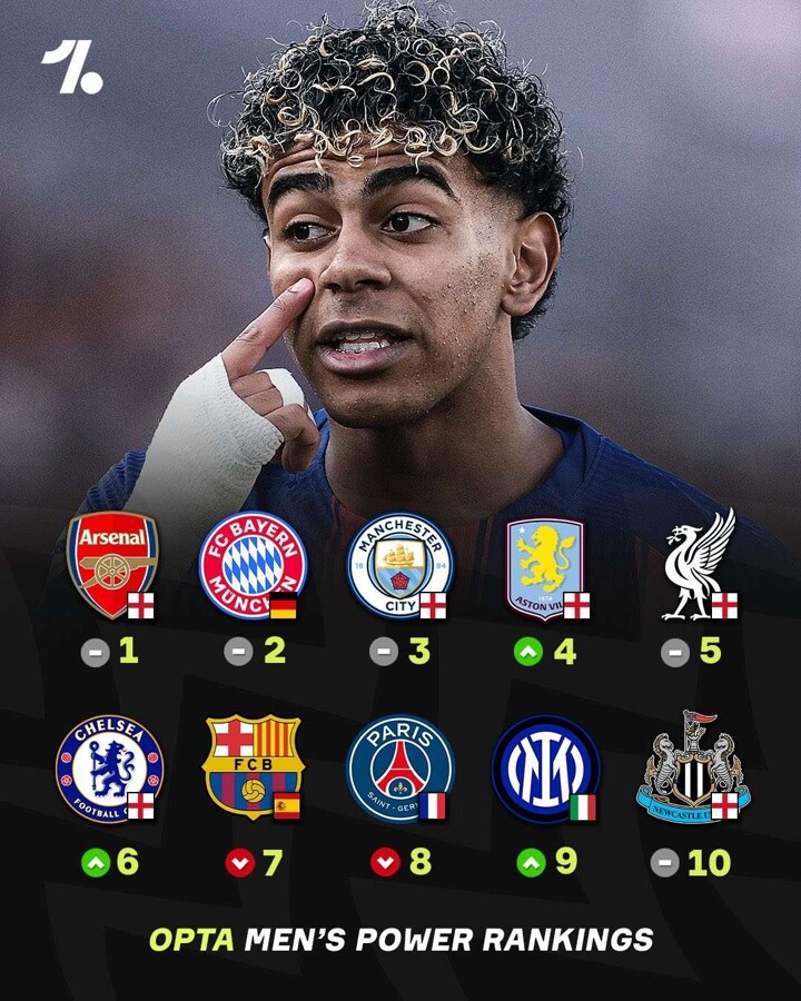 One Football has compiled the latest top 10 rankings of European club football by strength, with Arsenal, Bayern Munich, Manchester City, Aston Villa, Liverpool, Chelsea, Barcelona, Paris Saint-Germain, Internazionale and Newcastle United making the list.