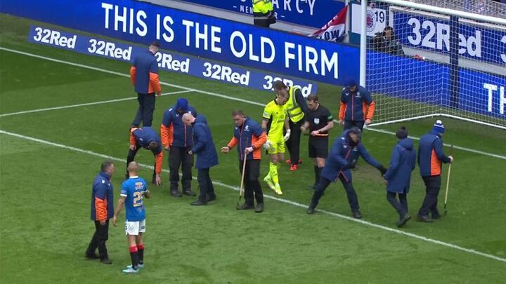 Former Celtic striker Andy Walker, who was commentating on the match on Sky Sports, said: "That is absolutely outrageous, to see broken bottles on the field of play which can affect the referee, the players, anyone that it's aimed at. It's outrageous.