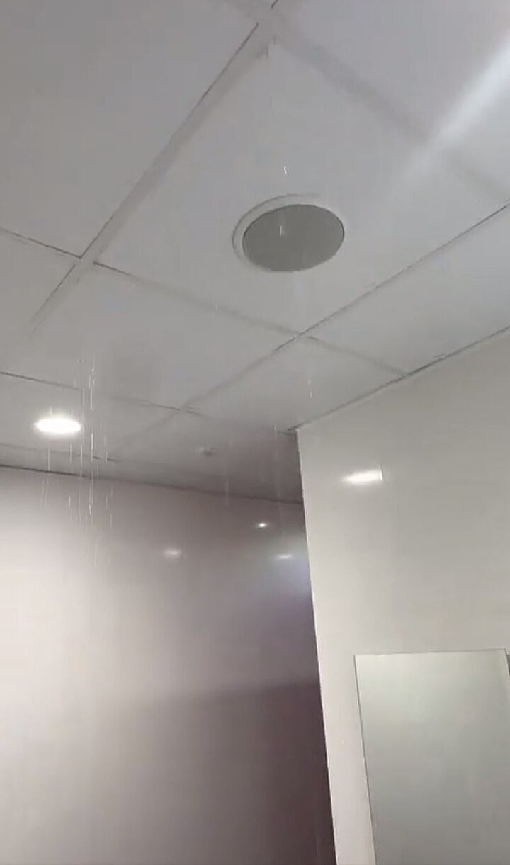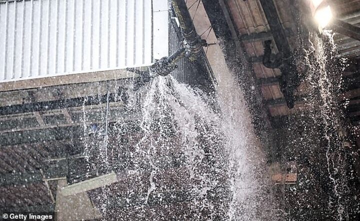 The downpour even made it's way to Arsenal's dressing room, with footage showing heavy leaks from the roof.