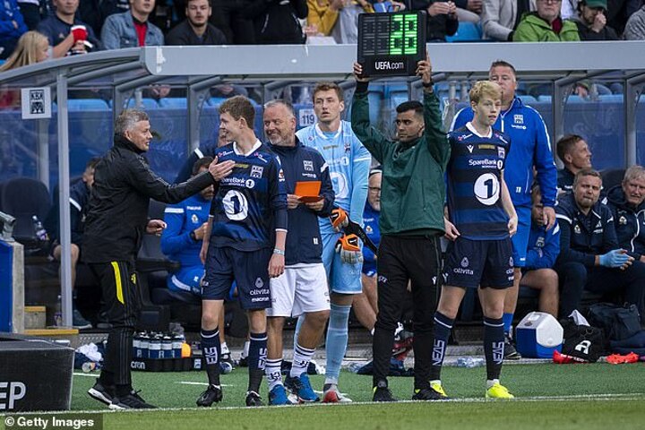 Although the Red Devils boss may not have enjoyed his side's lumbering performance against the Norwegian club, Ole Gunnar will remember the match with great pride after witnessing his son Noah make his professional debut, while his younger son Elijah sat with him in the dugout.