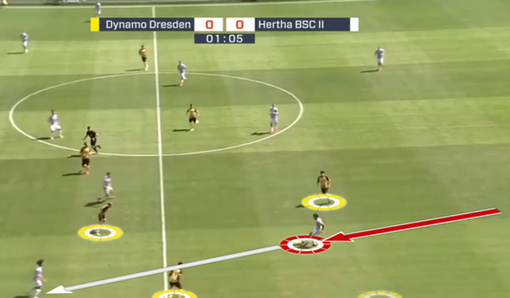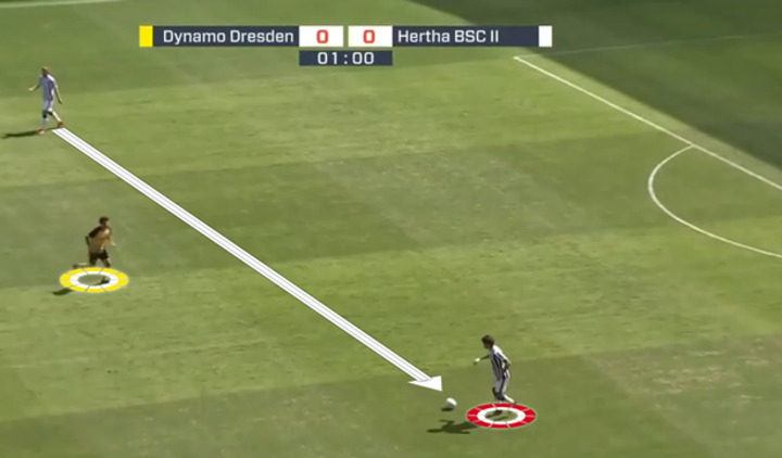 An example of the same is below, taken from a fixture against Dynamo Dresden earlier in the season. The play starts with Rekik receiving a pass from his fellow centre-back. The opposition attacker presses to cut out the pass back to his teammate.