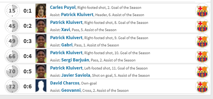 The former Dutch star scored FOUR goals for Barcelona after Puyol's opener in 45', 49', 66' & 70'. Sensational move!