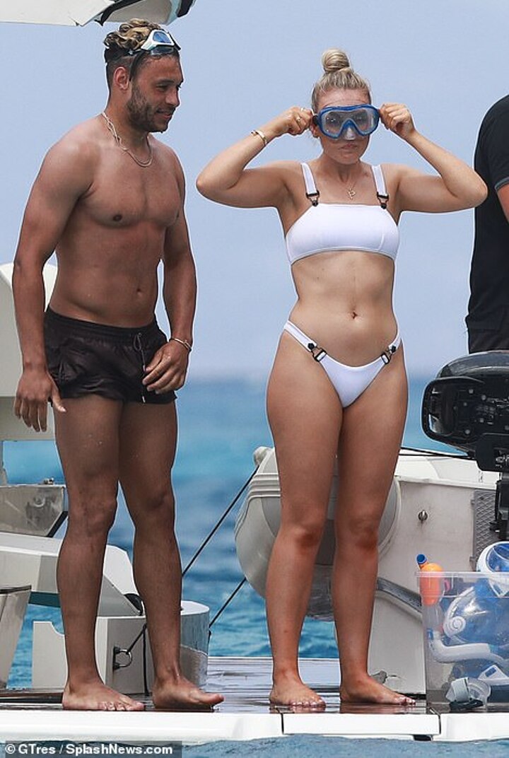 And Perrie Edwards continued to celebrate beau's football triumph as she joined him for a spot of snorkeling and surfing during their romantic trip to Ibiza on Saturday afternoon.