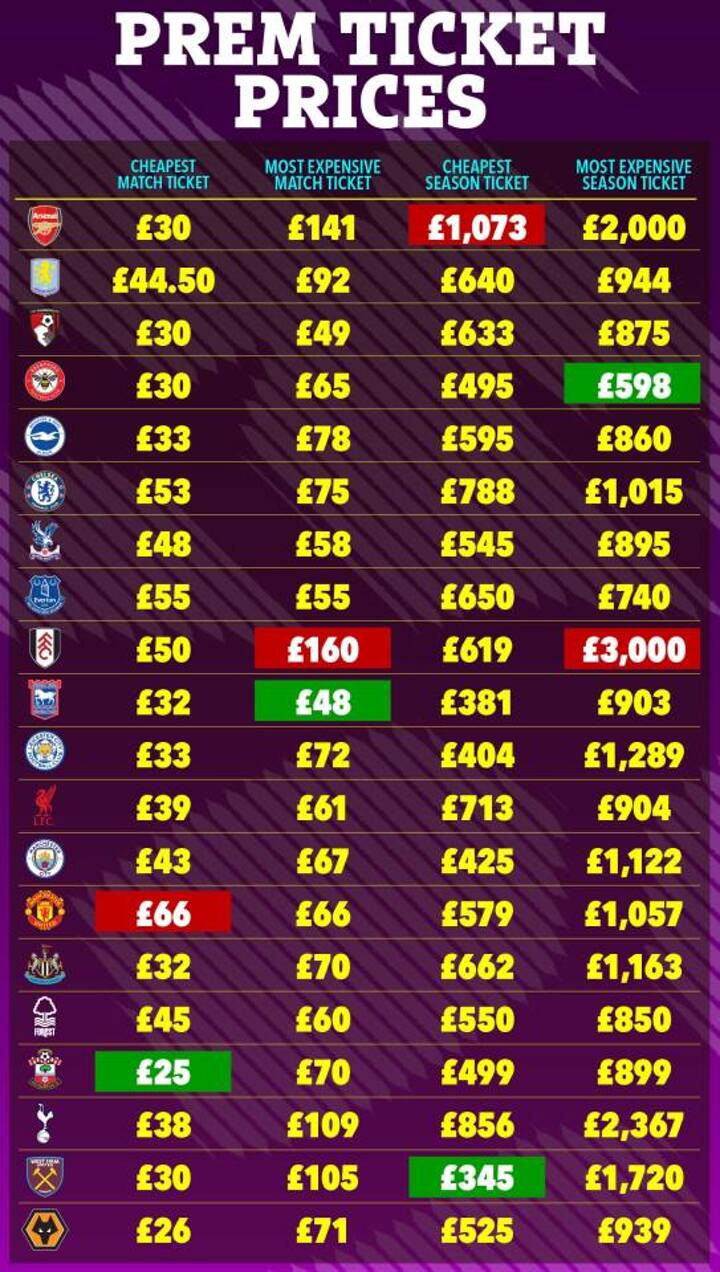 So SunSport has run down every Premier League club's cheapest and most expensive tickets, including a handy table below, according to data from Ticket Compare.