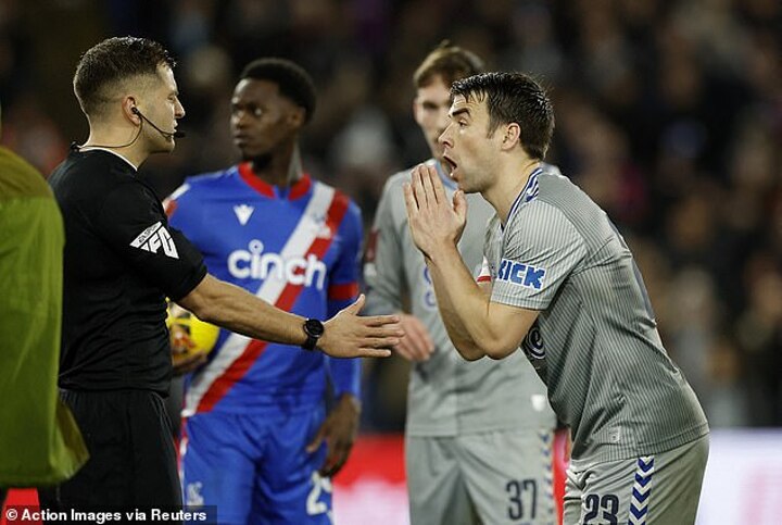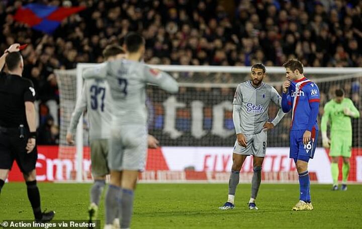 Dominic Calvert-Lewin saw red after a lengthy VAR check for a rash challenge on Nathaniel Clyne, although replays showed that there was minimal contact between the two players.