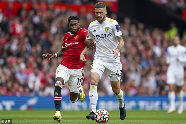 A by-stander in midfield as United constantly punished Leeds on the counter-attack,. Let Fred jog past him to score United’s fifth.